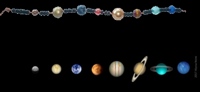The beads have been carefully selected to resemble the planets and each kit comes with a picture of the planets and their position from the sun. By making a band to go around the wrist, the wearer becomes the sun.